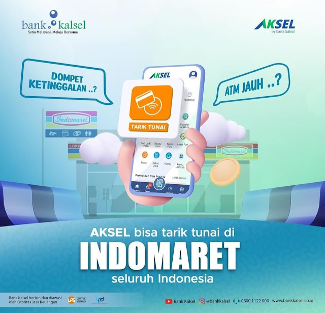 Terobosan terbaru dilakukan AKSEL by Bank Kalsel karena kini bisa tarik tunai di Indomaret seluruh Indonesia.