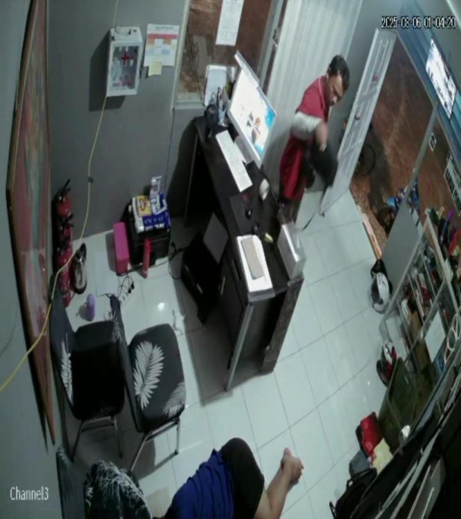 Aksi pelaku yang masuk secara diam-diam ke ruang resepsionis itu terekam jelas oleh kamera pengawas atau CCTV.