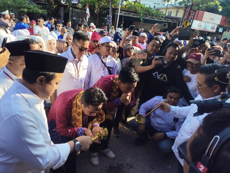 Setibanya didepan kantor KPU Kota Banjarmasin, pasangan Arifin-Akbari ditapung tawar oleh Rosehan dan Ibnu Sina.