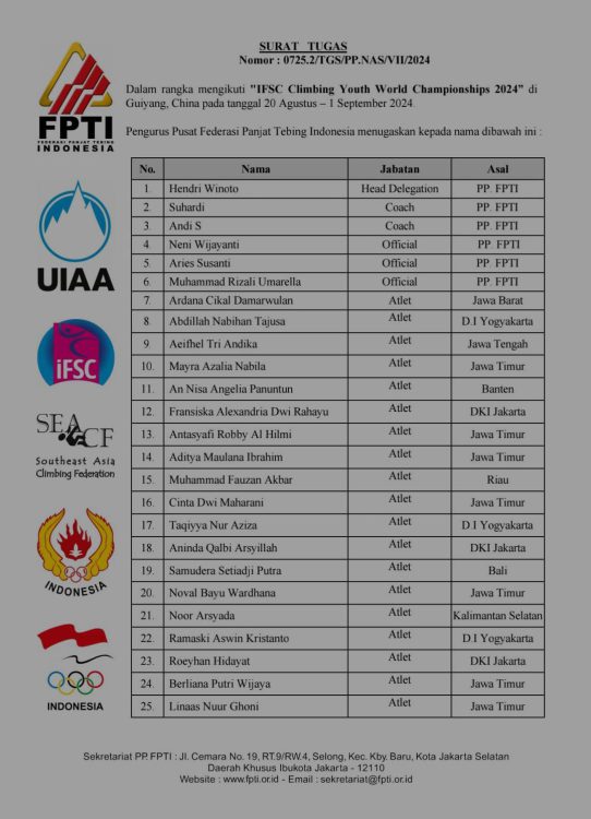 “Dari FPTI Kalsel kita alhamdulillah bersyukur bisa menjadi salah satu perwakilan Kalsel di Event Tingkat Dunia Youth resmi IFSC,” ujarnya, Senin (29/7/2024).