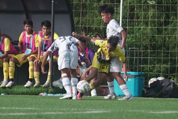 Borneo FC yang masih tertinggal satu gol, terus menerus melancarkan serangan-serangan yang membahayakan gawang Barito Putera U-16.