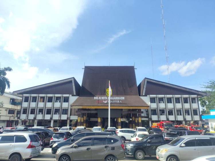 Salah satu lokasi yang masih menjadi perhatian adalah kawasan depan Balai Kota Banjarmasin. Di area tersebut, sebagian badan jalan terlihat dipenuhi barisan mobil yang didominasi kendaraan milik pegawai Pemerintah Kota Banjarmasin, sehingga mengurangi ruang lalu lintas masyarakat.