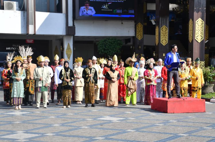 BANJARMASIN, klikkalsel.com – Pemko Banjarmasin menggelar apel dalam rangka memperingati hari sumpah pemuda ke 95 di halaman Balaikota Banjarmasin, dengan menggunakan pakaian adat, Senin (28/10/2024).