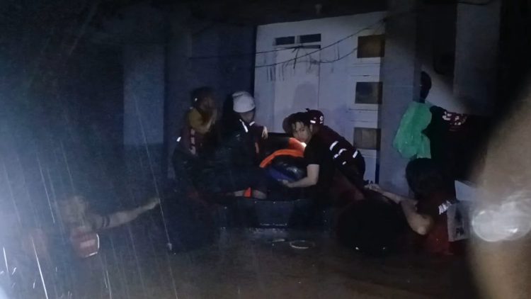 Banjir yang datang secara mendadak ini mengharuskan warga dievakuasi oleh Dinas Pemadam Kebakaran bersama tim emergenci, pasalnya ketinggian air mencapai 1,5 meter hingga 2 meter.