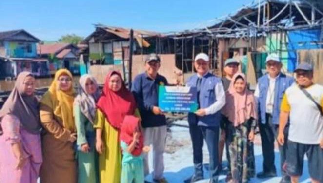 Kepala Cabang Utama Bank Kalsel, Suriadi, menyerahkan bantuan berupa uang tunai Rp15 juta kepada perwakilan warga yang terdampak kebakaran tersebut.