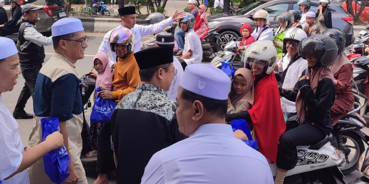 Di mana Walikota Banjarmasin H Ibnu Sina bersama pihak Bank Kalsel membagikan 2.000 konsumsi gratis untuk jemaah haul Guru Sekumpul di posko di batas kota di Jalan A. Yani KM 6 Banjarmasin, Minggu (5/1/2025) siang.