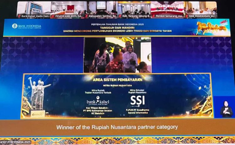 BANJARMASIN, klikkalsel.com – Bank Kalsel kembali menorehkan prestasi membanggakan pada ajang Pertemuan Tahunan Bank Indonesia (PTBI) 2025 yang mengusung tema “Tangguh dan Mandiri: Sinergi Mendorong Pertumbuhan Ekonomi Lebih Tinggi dan Berdaya Tahan” yang diselenggarakan serentak di seluruh Indonesia melalui siaran langsung, dengan acara utama terpusat di Kantor Pusat Bank Indonesia (BI) Jakarta.
