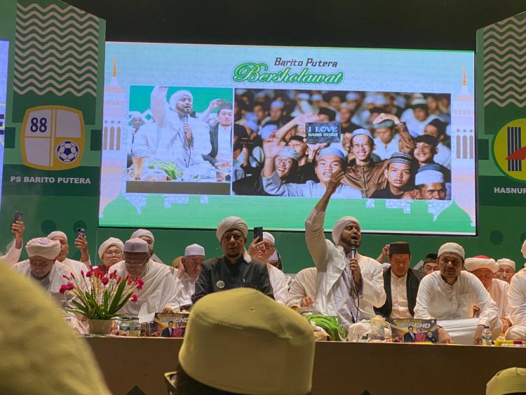 Setelah shalat Isya, jemaah bersatu dalam syair sholawat yang dipimpin oleh Habib Syech Abdul Qadir Assegaf, Ketua Dewan Penasehat Barito Putera. Dalam suasana penuh religiusitas, mereka mengungkapkan kecintaan kepada Rasulullah SAW.