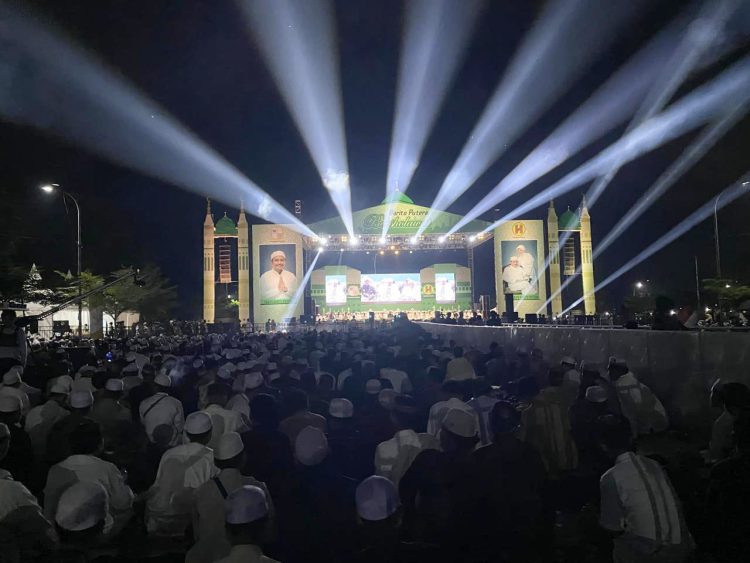 MARABAHAN, klikkalsel.com – Puluhan ribu jemaah memadati acara Barito Putera Bersholawat yang diselenggarakan di Halaman Masjid Bustanul Muhibbin, Handil Bakti, Kabupaten Barito Kuala pada Selasa (12/11/2024) malam.