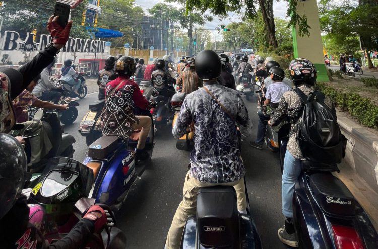 Kegiatan Batik Ride 2024 terseb merupakan yang perdana dengan mengusung tema “Bervespa dan Berbudaya” yang dikoordinator Marabahan Scooter Club (MSC) dari Siring Balai Kota Banjarmasin menuju Gelora Kesenian Marabahan, Sabtu (12/10/2024).