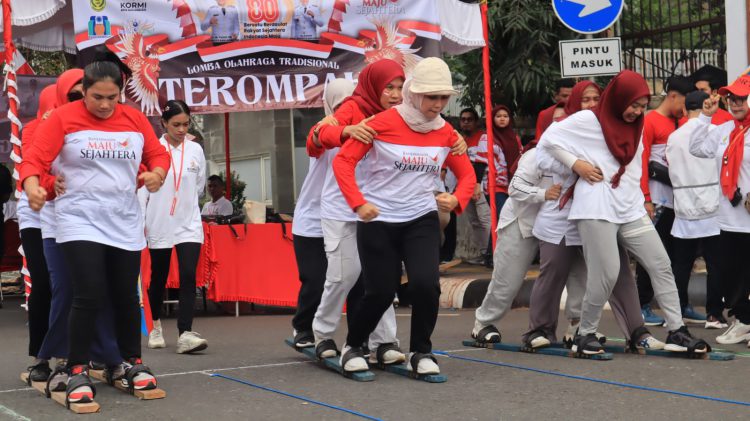 BANJARMASIN, klikkalsel.com – Halaman Balai Kota Banjarmasin dipenuhi dengan keramaian, untuk memeriahkan Hari Ulang Tahun (HUT) Kemerdekaan RI ke-80 dengan berbagai perlombaan permainan tradisional.