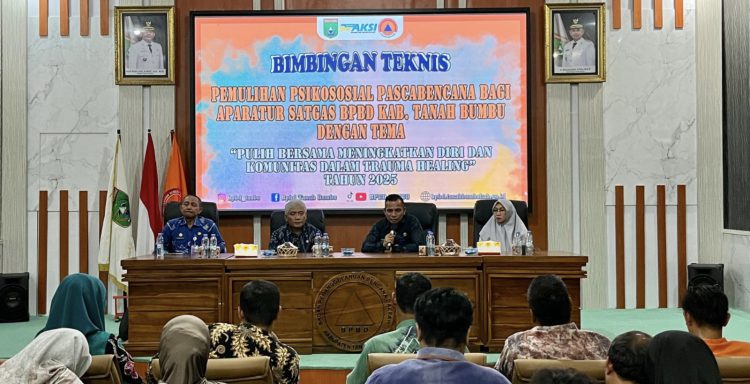 BATULICIN, klikkalsel.com –Pemerintah Kabupaten Tanah Bumbu (Pemkab Tanbu) melalui Badan Penanggulangan Bencana Daerah (BPBD) Kabupaten melaksanakan Bimbingan Teknis (Bimtek) Pemulihan Psikososial Pascabencana, Jumat (7/11/2025).