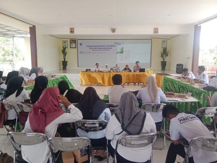 Sosialisasi dilakukan oleh Kepala Cabang BPJS Ketenagakerjaan, Wisnu Wardhana beserta tim dan dibuka oleh Plt. Camat Kelumpang Hilir, Lanjar Titi Sumarni.