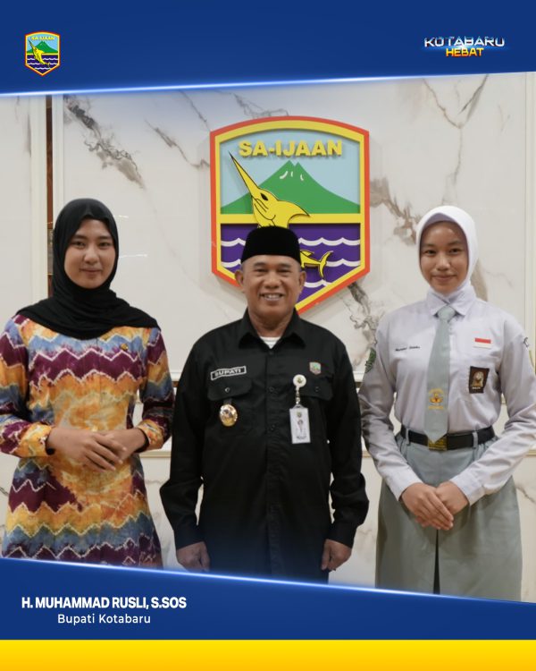 Bupati Kotabaru Muhammad Rusli dalam menerima kunjungan Maratus Soleha siswi berprestasi yang didampingi dari Badan Kesbangpol, pada Jumat (20/06/2025) diruang kerjanya, mendukung penuh terpilihnya Maratus Soleha pelajar SMKN 1 Kotabaru, yang siap melaju ke seleksi Paskibraka Tingkat Pusat.