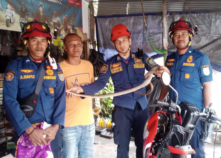 MARTAPURA, klikkalsel.com – Binatang melata belakangan ini sering masuk ke pemukiman, bahkan tidak jarang masuk ke dalam rumah warga, hingga Tim Rescue Dinas Pemadam Kebakaran dan Penyalamatan (DPKP) Banjar harus turun tangan.