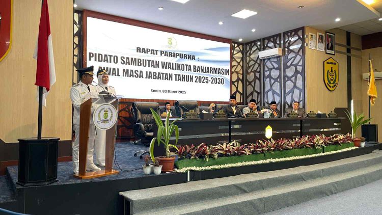 BANJARMASIN, klikkalsel.com – DPRD Banjarmasin menggelar rapat paripurna pidato sambutan Walikota Banjarmasin awal masa tugas 2025-2030, di ruang paripurna gedung dewan, Senin (3/3/2025).