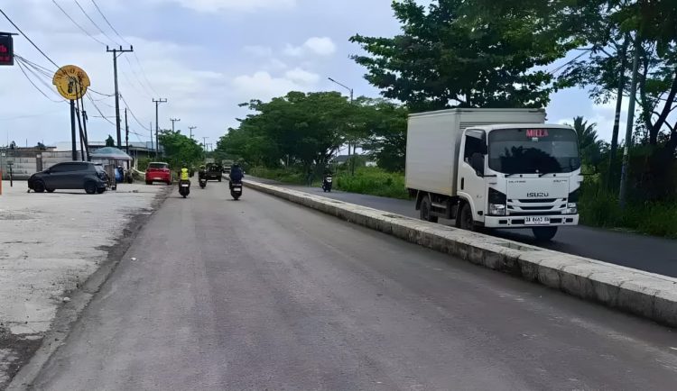 Kondisi tersebut mempersempit ruang pergerakan kendaraan lain, sehingga memperparah potensi kerusakan jalan dan mengganggu kelancaran pekerjaan perbaikan.