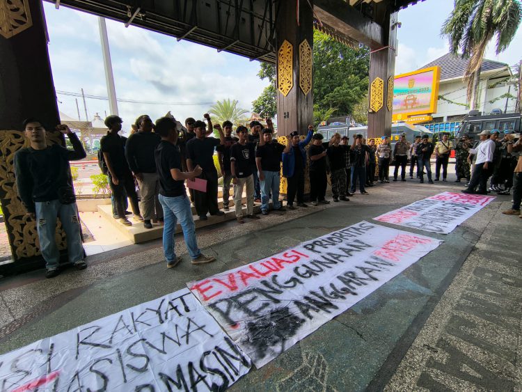Puluhan massa aksi ini menyerukan sebanyak 12 tuntutan tentang permasalahan yang terjadi di Banjarmasin, mulai dari permasalahan sampah, Banjir Rob, BPJS, ASN hingga kasus yang baru-baru ini viral yakni pengadaan mobil listrik.