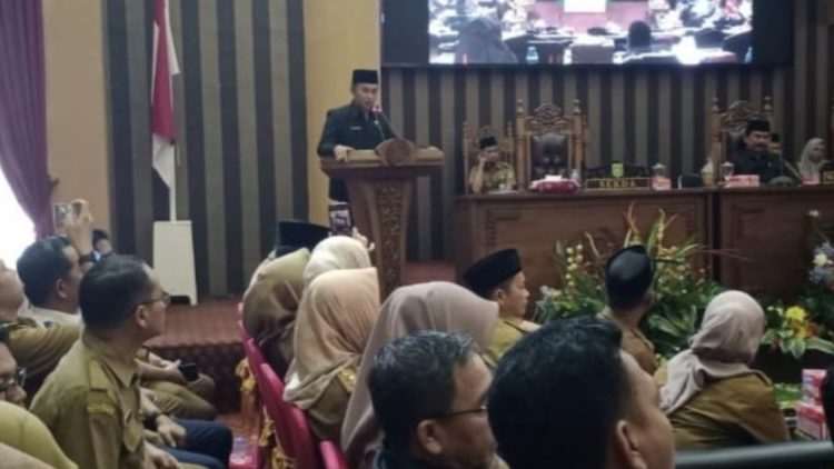Rapat paripurna di pimpin oleh Wakil Ketua DPRD Tanbu Harmanudin serta dihadiri oleh sejumlah pimpinan SKPD dan perwakilan Forkopimda.(adv/rini)