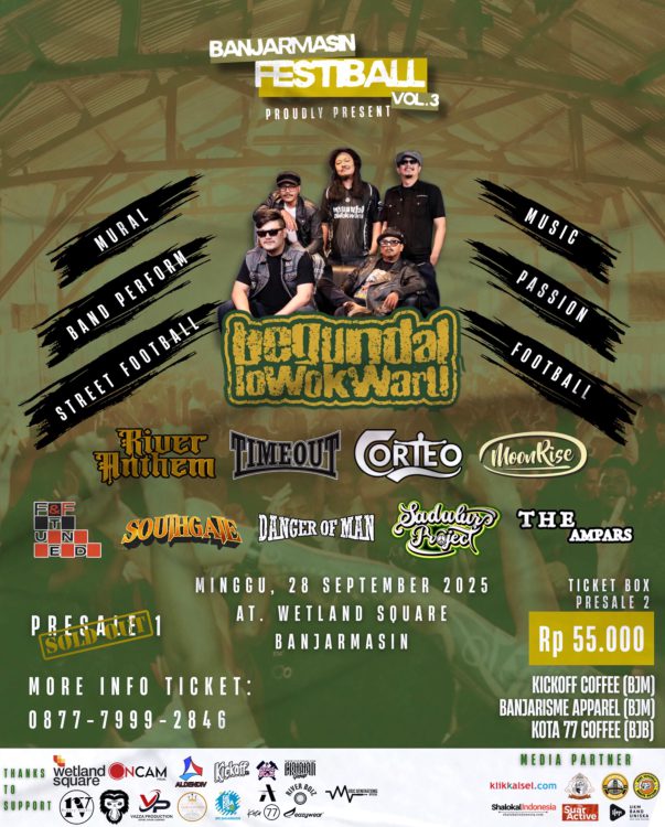 Festival yang menggabungkan semangat musik dan sepak bola itu akan memasuki edisi ketiga dengan tajuk Vol.3, yang dijadwalkan berlangsung di Wetland Square Banjarmasin, pada (28/9/2025) mendatang.