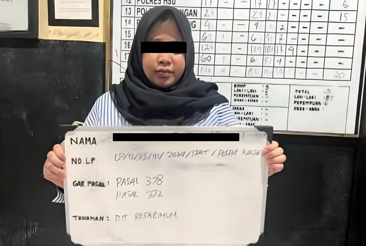 BANJARMASIN, klikkalsel.com – FN (27) tersangka kasus investasi bisnis solar diduga bodong kini mendekam di ruang tahanan dan barang bukti Polda Kalsel. Proses penahanan terhadap oknum Bhayangkari atau istri polisi itu terbilang cukup lama pasca ditetapkan sebagai tersangka pada 1 April 2024 lalu oleh Ditreskrimum Polda Kalsel.