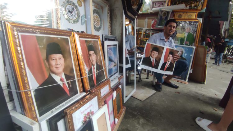 Toko yang menjual berbagai foto-foto beserta piguranya itu, mulai menjual foto figura Presidan dan Wapres Prabowo – Gibran