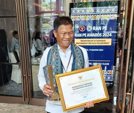 JAKARTA, klikkalsel.com – Gubernur Kalimantan Selatan (Kalsel), Sahbirin Noor menerima penghargaan dalam rencana aksi nasional pencegahan ektremisme berbasis kekerasan yang mengarah pada terorisme (RAN PE) Awards pada kategori inisiator dan berkomitmen dalam pelaksanaan RAN-PE yang diserahkan langsung oleh Wakil Presiden RI, KH Ma’ruf Amin di The Westin Hotel, Jakarta, Senin (19/08/2024).