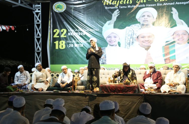 “Majelis ini rutin setiap malam Sabtu, maghrib sampai isya selesai. Alhamdulillah, malam ini Habib Rifky Alaydrus datang ke Kalimantan Selatan. Beliau datang bersama Kanda Hasnuryadi Sulaiman,” jelasnya Guru Mubarok.