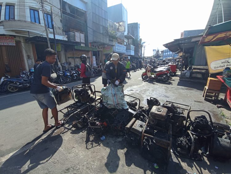 Seperti Hamdan dan Usuf satu diantara karyawan dari pedagang yang menjual mesin Genset dan Alkon. Nampak sibuk bersama rekan rekanya mengeluarkan sisa sisa mesin mesin tersebut.