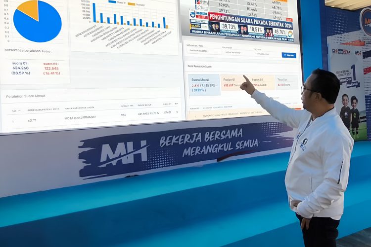 “Alhamdulillah berdasarkan data masuk paslon 01 unggul jauh dibandingkan paslon 02. Dilihat dari 13 kabupaten/kota se-Kalsel data sementara masuk, Muhidin-Hasnur meraih suara terbanyak,” tuturnya.