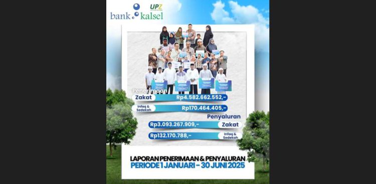 BANJARMASIN, klikkalsel.com – Terhitung sejak 1 Januari- 30 Juni 2025, total penerimaan Unit Pengumpul Zakat (UPZ) Bank Kalsel untuk zakat sebesar Rp4.582.662.552, sementara infaq dan sedekah sebanyak Rp170.464.405.