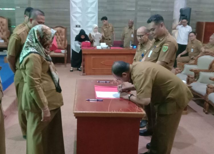 Penandatanganan tersebut dilakukan oleh Pj Bupati Tabalong, Hj Hamida Munawarah, Pj Sekretaris Daerah Tabalong, Nanang Mulkani, seluruh asisten, staff ahli dan jajaran lainnya.