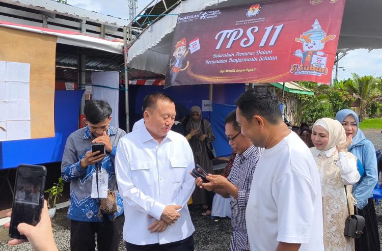 BANJARMASIN, klikkalsel.com – Calon Gubernur Kalsel nomor urut 1, Muhidin bersama istri Fathul Jannah memilih jalan kaki menuju tempat pemungutan suara (TPS) 11 di Jalan Kayu Kuku Banjar Indah, Banjarmasin Selatan, Rabu (27/11/2024).