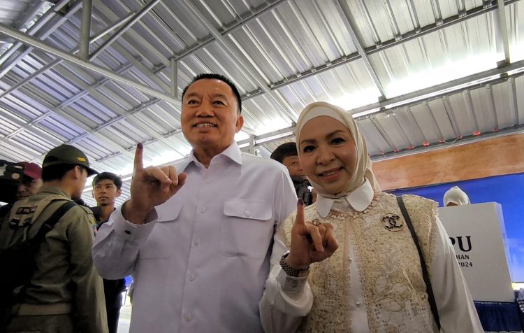 BANJARMASIN, klikkalsel.com – Calon Gubernur Kalsel nomor urut 1, Muhidin bersama istri Fathul Jannah memilih jalan kaki menuju tempat pemungutan suara (TPS) 11 di Jalan Kayu Kuku Banjar Indah, Banjarmasin Selatan, Rabu (27/11/2024).