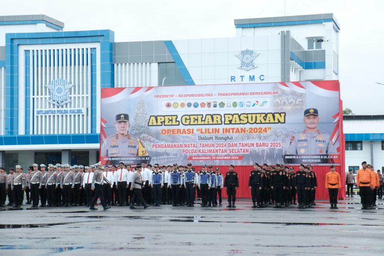 Kapolda Kalsel, Irjen Pol Rusyanto Yudha Hermawan memastikan kesiapan 2.466 personil gabungan melalui Apel Gelar Pasukan Operasi “Lilin Intan-2024” di Halaman halaman RTMC Ditlantas Polda Kalsel, Banjarbaru, Jumat, (20/12/2024).