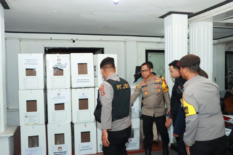 Guna memastikan kelancaran dan keamanan pergeseran Kotak Rekapitulasi suara dari 13 kabupaten/kota se-Kalsel tersebut, Kapolresta Banjarmasin Kombes Pol Sabana A Martosumito memimpin langsung proses pergeseran.