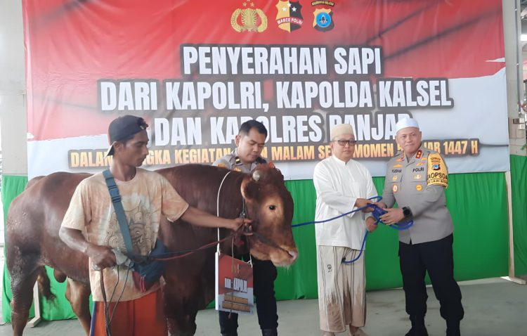 Salah satunya bentuk dukungan Kapolri yakni bantuan sapi limousin dengan bobot hampir satu ton yang diserahkan Kapolda Kalsel Irjen Pol Rusyanto Yudha Hermawan kepada Imam Mushola Ar-Raudhah Sekumpul, Tuan Guru H Sa’duddin Salman di Martapura, Senin (22/12/2025).