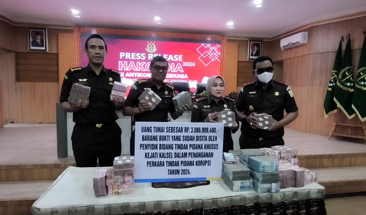 Dalam Press Release perkara korupsi yang digelar dalam rangka memperingati Hari Anti Korupsi Sedunia (Hakordia) tahun 2024 dengan tema “Bersama Melawan Korupsi Untuk Indonesia Maju” ini, Kejati Kalsel turut memperlihatkan uang tunai sebesar Rp 3 miliar lebih yang disita dari 5 perkara tersebut.