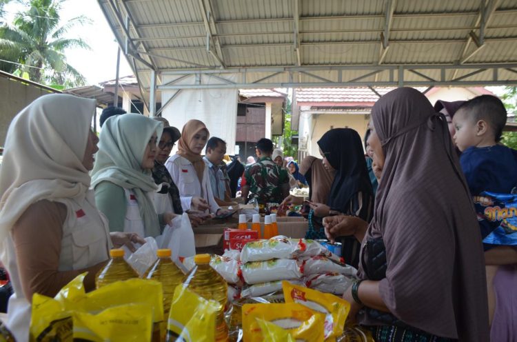 Terlihat antusias warga sangat ramai menyerbu pasar murah untuk berbelanja sejumlah kebutuhan pokok dapur seperti beras, gula, minyak goreng, tepung, telur, mie instan, bawang merah, bawang putih dan lain-lain.