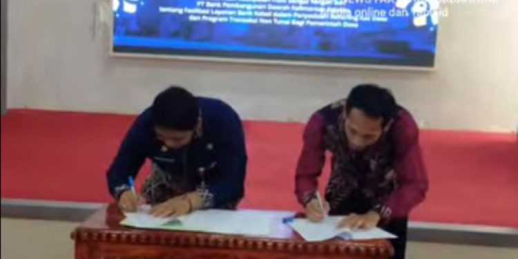 Penandatangan kerja sama bertempat di Pendopo Bupati HST, di sela Pemerintah Kabupaten (Pemkab) HST bekerja sama dengan PT Bank Pembangunan Daerah Kalimantan Selatan (Bank Kalsel) menggelar kegiatan fasilitasi layanan rekening kas desa dan transaksi non tunai bagi seluruh pemerintah desa se-HST, pada Kamis (10/7/2025).