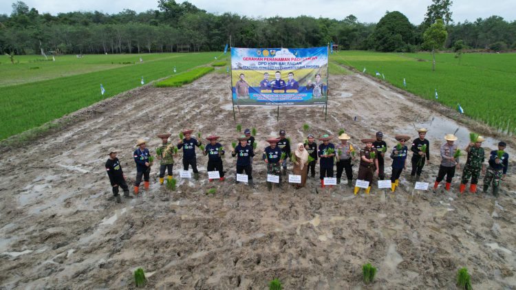 PARINGIN, klikkalsel.com – Komite Nasional Pemuda Indonesia (KNPI) Kabupaten Balangan menggelar aksi tanam padi sebagai bentuk kepedulian terhadap ketahanan pangan yang berfokus pada pemberdayaan petani milenial, di Desa Juai, Kecamatan Juai, Senin (03/02/2024)