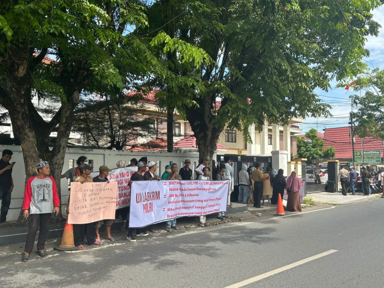 BANJARMASIN, klikkalsel.com – Sojuangun Hutauruk, korban mafia tanah, bersama sejumlah massa melakukan aksi protes di depan Pengadilan Negeri (PN) Banjarmasin, Rabu (9/10/2024).