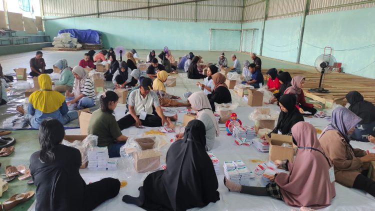 Proses penyortiran dan pelipatan surat PSU berlangsung di Gudang Logistik KPU Kota Banjarbaru, Kamis (10/4/2025). Komisioner KPU Kalsel, Fahmi Failasopa memastikan seluruh petugas bekerja profesional sehingga keutuhan surat suara terjaga.