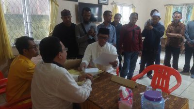 MARTAPURA, klikkalsel.com – Diantar puluhan warga, Camat Aranio Dedi Kurniadi ambil formulir ke DPD Partai…