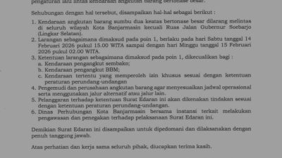 BANJARMASIN, klikkalsel.com – Pemerintah Kota Banjarmasin resmi memberlakukan pembatasan operasional kendaraan angkutan barang bertonase besar…