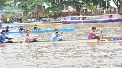 BANJARMASIN, klikkalsel.com – Suasana Sungai Martapura tampak semarak dengan digelarnya lomba tradisional Jukung Balap Baanam…
