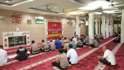 BANJARMASIN– Sambil duduk bersimpuh rapi, personel Polresta Banjarmasin hanyut dalam zikir dan doa yang dipanjatkan…