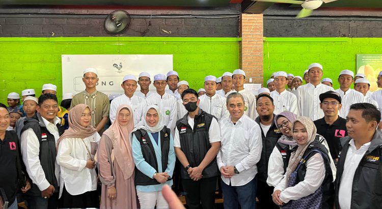 Salah satu rumah makan dekat Bundaran Simpang Empat Banjarbaru menjadi lokasi pertama kegiatan, di sana sudah ada ratusan santri bersama anak yatim piatu dan kaum dhuafa yang menunggu kedatangan mereka.