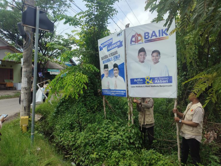 Untuk itu di masa tenang ini Bawaslu dibantu Satpol PP Kota Banjarmasin melakukan penertiban terhadap APK Paslon peserta Pilkada yang masih terpasang di sejumlah wilayah di Kota Banjarmasin.