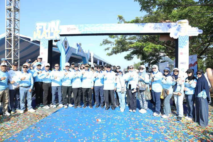 BANJARBARU, klikkalsel.com – Ribuan masyarakat dan pegawai tumpah ruah mengikuti kegiatan Fun Walk 2025 dalam rangka Hari Jadi (Harjad) ke-75 Provinsi Kalsel di kawasan Perkantoran Pemprov Kalimantan Selatan (Kalsel), Banjarbaru, Sabtu (16/8/2025).